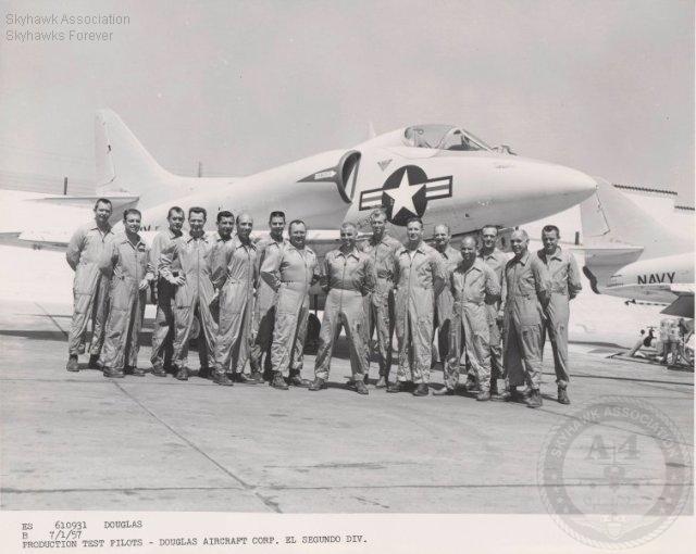 D.W. Wood - Test Pilot, 1st A-4B R.E. Drew - Test Pilot, 1st A-4C D.R. Wilson - Test Pilot, 1st A-4E H.H. Knickerbocker - Test Pilot, 1st TA-4F W.S. Smith - Test Pilot, 1st A-4F, TA-4J, A-4K, A-4L and A-4M James Stegman - Test Pilot, 1st A-4G and TA-4G J.P. Lane - Test Pilot, 1st A-4H, TA-4H, TA-4K and A-4N F.W. Hamilton - Test Pilot, 1st A-4KU and TA-4KU Walter Harper - Test Pilot 1956-1973 William Paulson - Test Pilot Bob Krall - Test Pilot Harold G. Tutterrow - Tool Design Bill Bridgeman, Douglas Test Pilot. Neil Jacobe, former Senior Graphic Specialist with McDonnell-Douglas