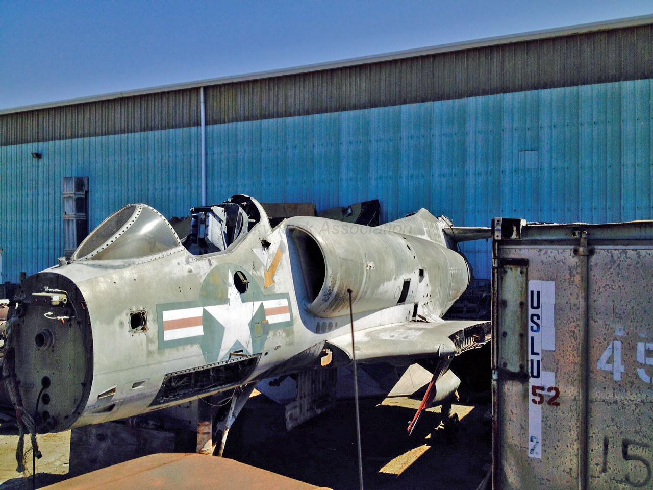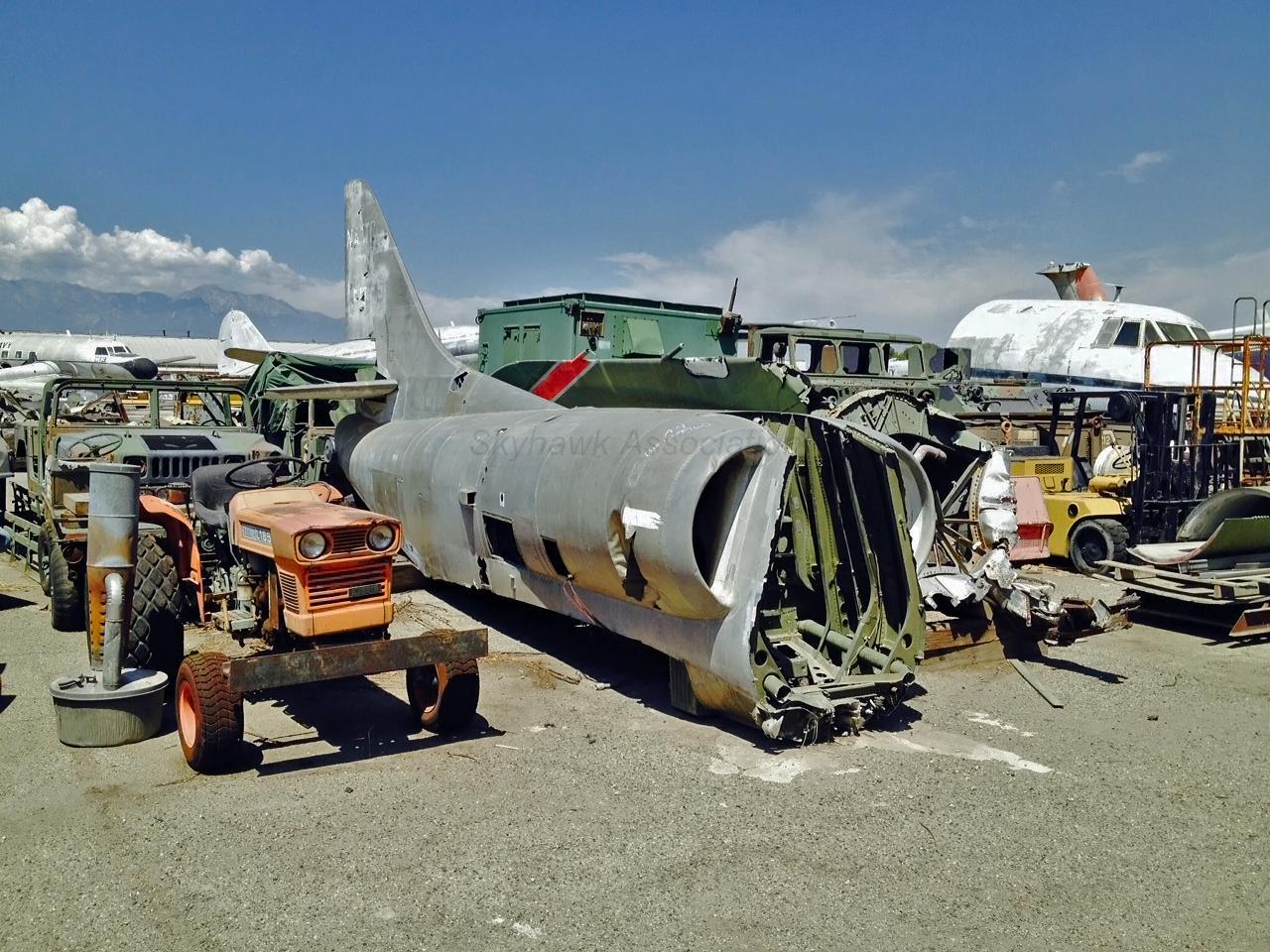 "The one we tore apart was a BuNo 158182, it was the real deal. The one that is painted up to look like it at DVHAA Museum, is really not! If you talk to some of the old timers there at the museum, they will tell you that we tore up the real deal that went in three pieces to the Indian Wells Bombing Range in Nevada, and has probably been blown to hell already! When we tore it apart, I read the BuNo right off the identification plate in the cockpit, and it was clearly painted into the tail section just forward of the sugar scoop. It was an old Marine Corps A-4M with the JFS exhaust just forward of 12R. The official disposition for our team was to tear it apart, put it on three trucks, and it would end up in Nevada, on a bombing range. "AOC(AW) Edward K. Hudson.