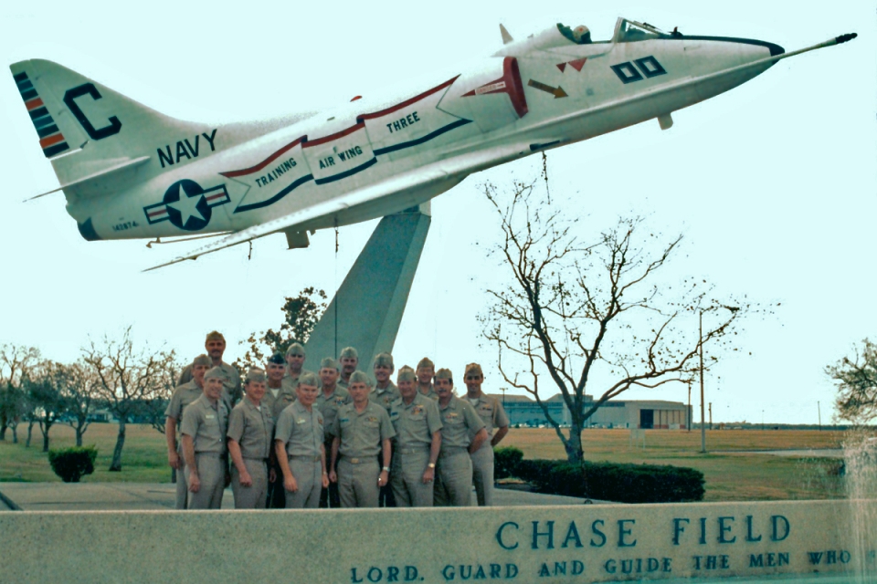 FEB 02Captain Hook's left front view of Skyhawk BuNo 158526 on display at NAS Meridian in training squadron markings with the side number A-700.