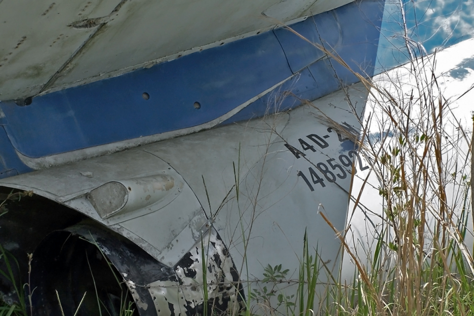 February 2002: former NATC Patuxent River SD-8 on the Quonset line without the gear doors. Museum photo.