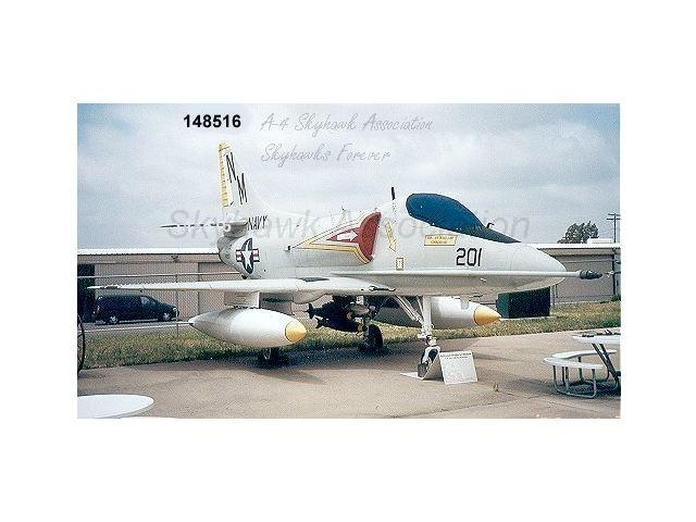 Pic 1 "The Foundation A-4B Skyhawk is currently painted to represent aircraft BuNo 148609, an A-4C flown by LCDR Ted "T.R." Swartz, a member of Squadron VA-76, operating from the aircraft carrier USS Bon Homme Richard (CVA-31) during the Vietnam War. On May 1, 1967, LCDR Swartz shot down a MIG-17 over North Vietnam with an unguided ZUNI rocket. This was the only air-to-air kill by a Skyhawk during the Vietnam War."