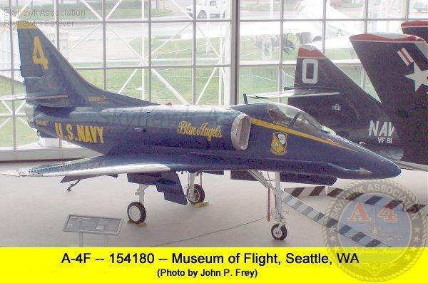 Update JUL 2013: confirmation that the a/c in question is indeed BuNo 158182, although equipped with a replacement tail. "In 1994, I was the Restoration Team manager for the DVHAA when we received 158182 from VMA-131. As you already know, 158182 had the top three feet or so of its vertical stabilizer taken off in flight when a turkey buzzard collided with the aircraft near Harrisburg, PA. The pilot managed to retain control of the aircraft and successfully brought the aircraft home despite the loss of one of the three rudder hinges. When the aircraft was stricken and given to DVHAA, another A4M had already been stricken and given to the base fire department for crash crew practice. VMA-131 swapped out the tail section from 158182 with the A4M given to the fire department, and we went on to complete a full restoration of 158182. Let me add that MSgt. Steve Baxter, who was VMA-131's Maintenance Chief at the time, personally gave me the logbooks for 158182 after the loan agreement between the National Museum of Naval Aviation and the DVHAA was completed and delivered. Today, I went over to the Wings of Freedom museum, joined by retired GySgt. Ed Miranda, who retired from active duty while serving with VMA-131, and stayed on with the squadron as a civilian tech rep working for Kay and Associates until VMA-131 flew it’s very last aircraft (BuNo 160024) to MCAS Cherry Point, into retirement. I have photographed both the data plate behind the ejection seat and the Buno plate found on the instrument panel, both showing 158182. ..." John Benton.