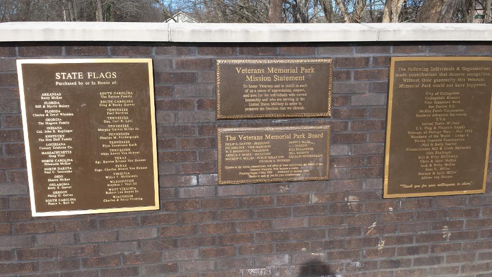 01 January 2016: Veterans Memorial Park in Collegedale, TN.