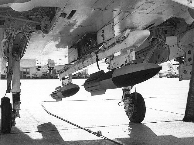 Three 500 lb. Mk82 bombs on TER on the center line of an unknown RNZAF A-4K Skyhawk, date unknown. Official RNZAF photo via Don Simms.