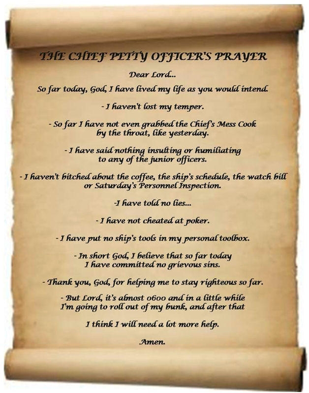25. Beware of the Old Man and regardeth ye him highly for he is all powerful. When he approacheth, lingereth ye not in Flight Deck Control for he falleth like a whirlwind upon the idle and luncheth upon the junior grade lieutenant without compassion.