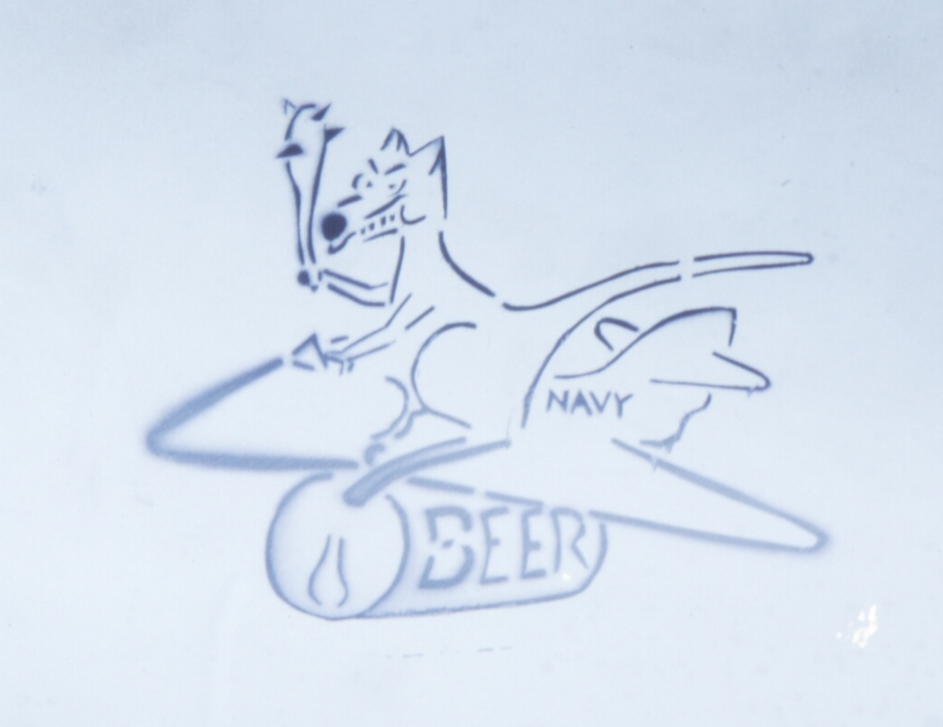I look at the Air force Airman and he offers; There is a Navy Reserve Unit down in the Supply area; maybe they can help? I remembered that it was Sunday afternoon and the reserves work weekends. Well hey, the Navy has A4s: lets go check it out! So off we go in the line tractor, the young Air Force Airman with the young Marine Lieutenant in Green Nomex flight suit, brown Boots, shaved hair and a khaki cover. I always looked young for my age. Years later while a jet flight instructor, the folks asking questions about aviation would always direct the questions to my students, assuming they were the flight instructor - I simply did not look my age. As a young 1st Lt., I looked like some high school kid who had stolen a flight suit. We rolled down between all these storage warehouses in the supply area, I mean dozens of warehouses. Rolling to a stop in front of one, with a sign depicting a bee with a Thompson machine gun, which in my haste I did not see,