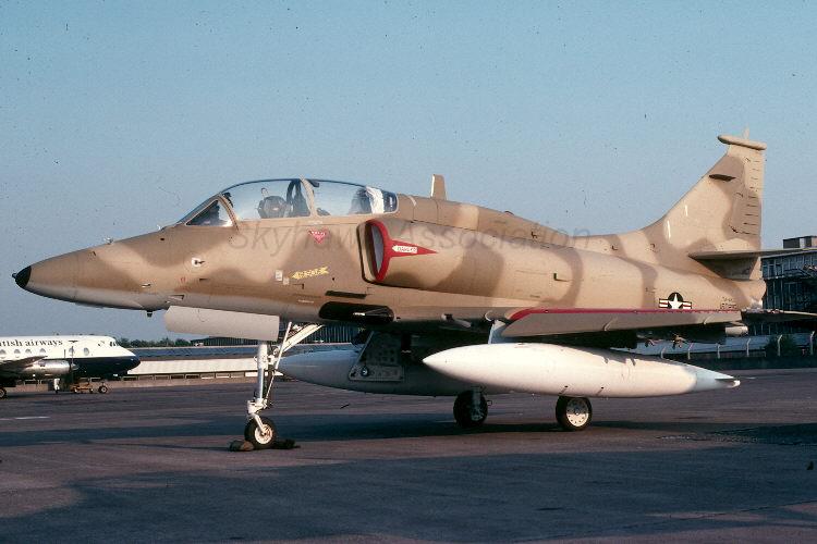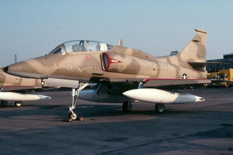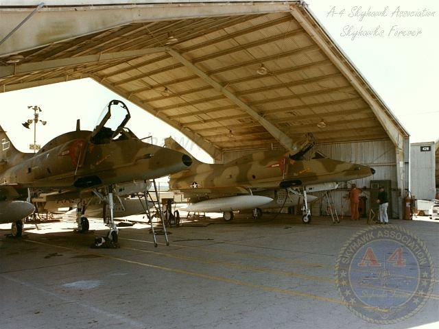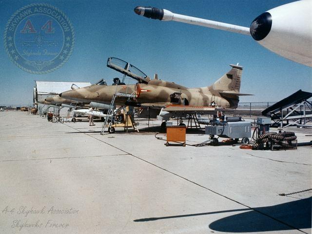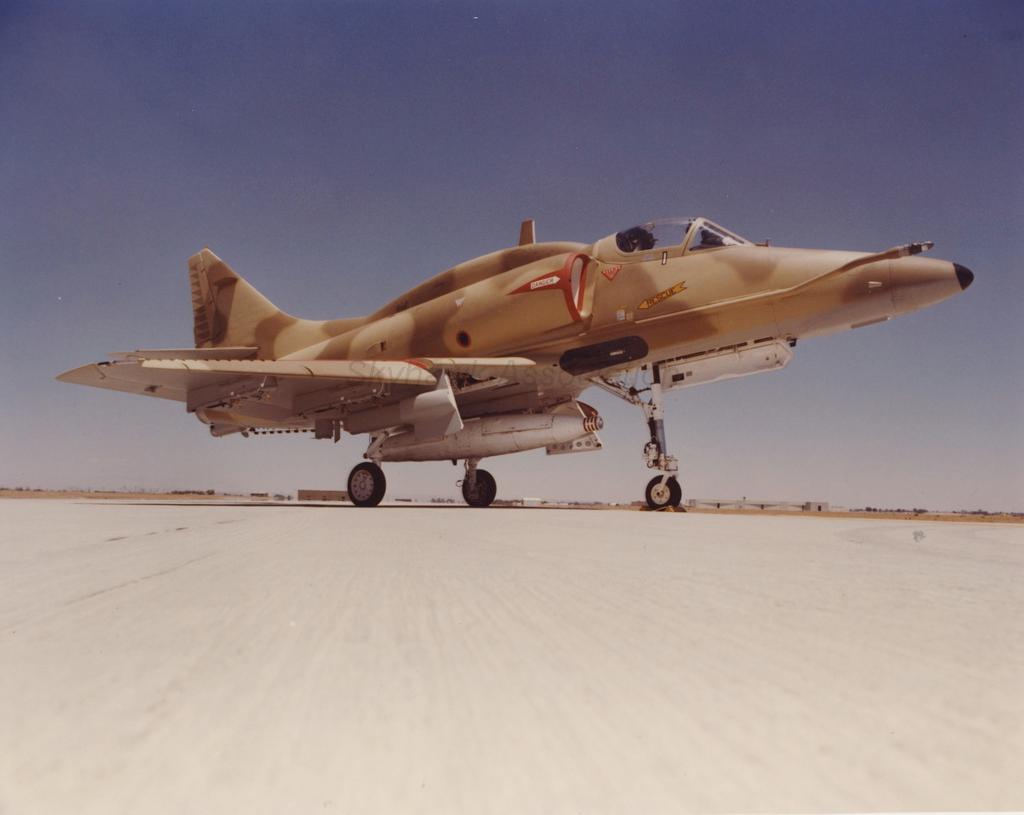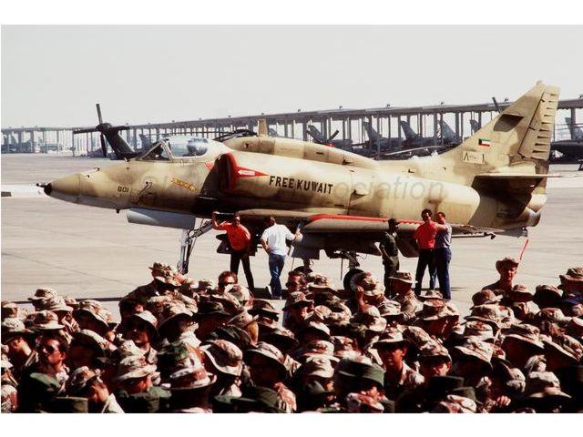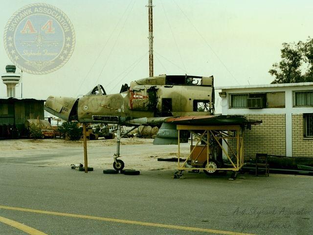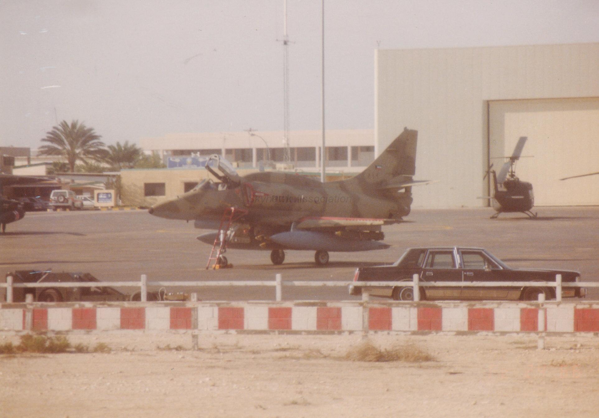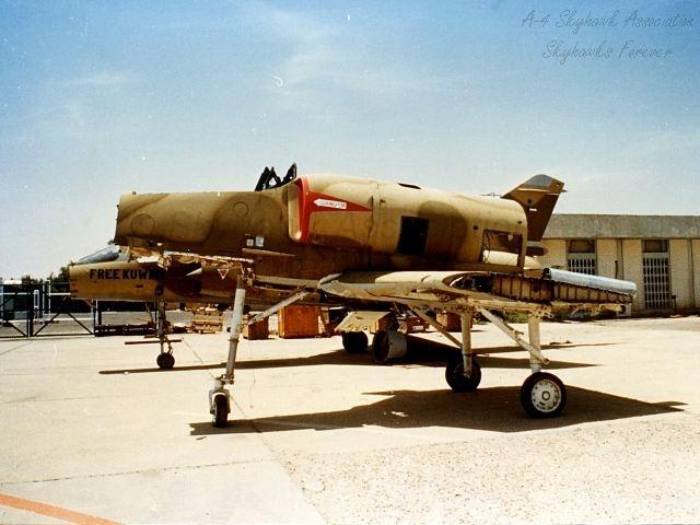 Unit Photos Circa 1976: Kuwati Skyhawk under shelter loaded with a practice bomb on Station One. Phtographer unknown 01APR92: Kuwaiti Skyhawk BuNo 160186, #807, as she taxies by the photographer during Operation Desert Shield in Saudi Arabia. USAF photo. Three unknown Kuwaiti Skyhawks painted in a brown/tan camouflage scheme. Harry Gann 1976: Kuwait Skyhawk BuNo 160183 alongside an unidentified Kuwait A-4KU. Gary Verver Collection 1976 Kuwait Skyhawk BuNo 160184 on the taxiway with two other unidentified Kuwaiti A-4KU's. 1976 Kuwait Skyhawk BuNo 160210 on the ramp with two unidentified Kuwaiti A-4KU's. 1976 Kuwait Skyhawk BuNo 160210 on the runway with a ground crewman. 1976 Kuwait Skyhawk BuNo 160210 on the runway and ready for take-off. 1976 left side view of Kuwait Skyhawk BuNo 160210 on the runway and ready for take-off. 1977: Kuwaiti Skyhawk BuNo 160187 painted in a brown/tan camouflage scheme. circa 1977 Kuwaiti Skyhawks BuNo 160187 and BuNo 160183. circa 1977 Kuwaiti Skyhawks BuNo 160187 and BuNo 160183. circa 1977 Kuwaiti Skyhawk BuNo 160187. circa 1977 Kuwaiti Skyhawk BuNo 160194. circa 1977 Kuwaiti Skyhawk BuNo 160197. Circa 1976-77: BuNo 160182 taxi prior to delivery to Kuwait. Shot of a TA-4KU being flight tested in the U.S.A. Photo provide by James Stegman, test pilot for Douglas. James Stegman. Unknown A-4KU. circa 1976: Kuwait A-4KU Skyhawk BuNo 160184 , location unknown. 1978: BuNo 160210, on the ramp. From Gary Verver. 1978: BuNo 160214, on the ramp. From Gary Verver 1978: BuNo 160215, on the ramp. From Gary Verver During Desert Storm: Unknown A-4KU, in Saudi Arabia. 22 Nov 1990 Kuwait Skyhawk BuNo 160180, 801, parked on the fringes of a crowd that has gathered to listen to a speech by President George Bush who is paying a Thanksgiving Day visit to Operation Desert Shield U.S. troops. 1991 Kuwaiti A-4KU 807. 02 FEB 1991 Saudi Arabia: Kuwaiti A-4KU Skyhawk (all unknown) aircraft prepare to takeoff on a mission during Operation Desert Storm. 13 FEB 1991 Saudi Arabia: A 4KU Skyhawk (L-R: BuNo 160180, #801, BuNo 160181, #802, BuNo 160186, #807, BuNo 160188, #809 and 12 more unknown) aircraft of the Kuwait air force are serviced on a flight line in preparation for a mission during Operation Desert Storm. Official Photo by Tech Sgt David Mcleod. Kuwaiti A-4KU 827 - 1991. 01 Apr 1991 Kuwaiti Skyhawk BuNo 160206, #827,as a Kuwaiti pilot taxies toward the runway during Operation Desert Shield. U.S. Navy photo by Sgt Jeff Wright. TA-4KU BuNo 160213 photo by Max Tollens Remains of Kuwait Skyhawk #821 (BuNo 160200). Gary Verver Collection Remains of Kuwait Skyhawk forward fuselage and partial wing, BuNo unknown. Gary Verver Collection Remains of Kuwait Skyhawk forward fuselage, BuNo unknown. Off-Duty Photos No info yet. |