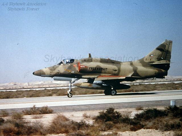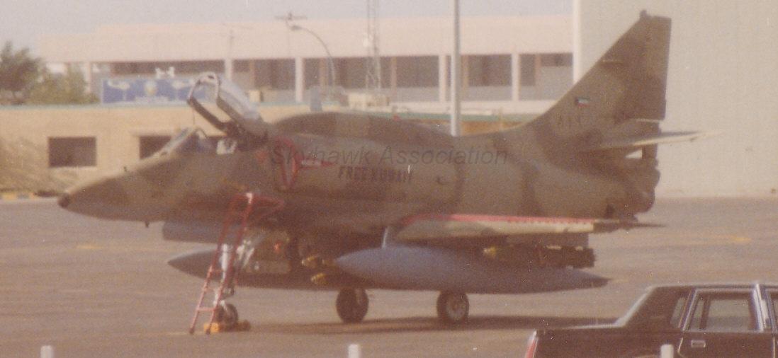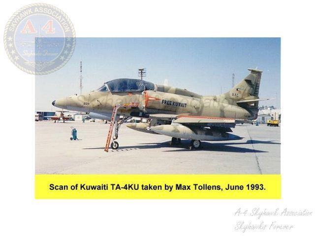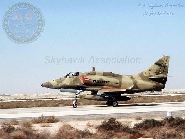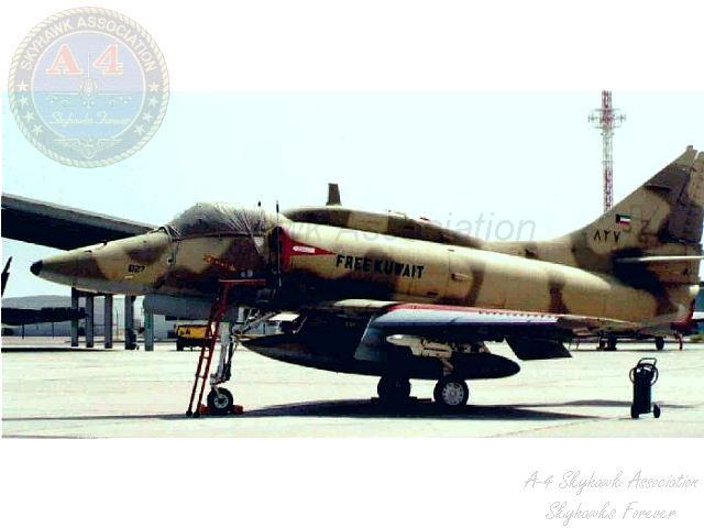 Aircraft Date Type First Received - - - - - - Type of Aircraft: 1977: Douglas A-4KU Skyhawk. 1977: Douglas TA-4KU Skyhawk. No.9 Squadron: 14 A-4KU / TA-4KU at Ahmed al-Jaber AFB No. 12 Squadron: 15 A-4KU / TA-4KU at Ahmed al-Jaber AFB |