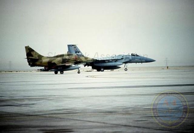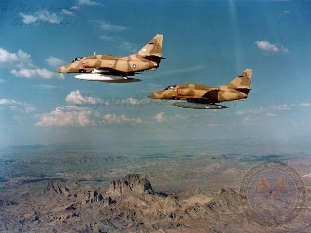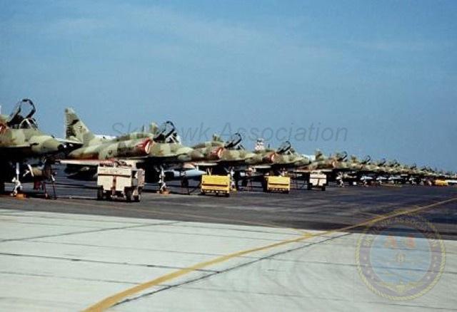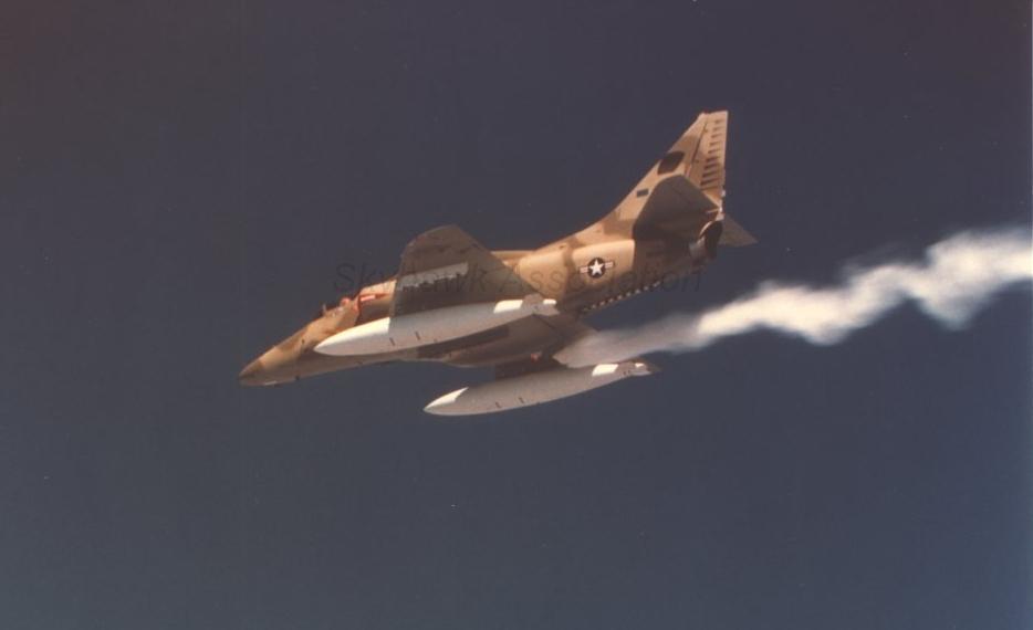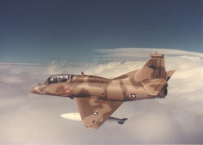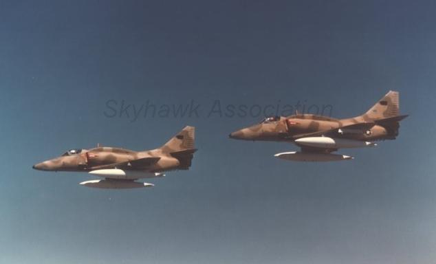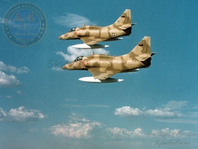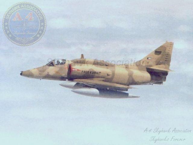 20 JAN 1975: Purchase of 30 new A-4Ms and 6 TA-4s. They were re-designated A-4KU and TA-4KU. 20 JUL 1976: First flight of the A-4KU. 14 DEC 1976: First flight of TA-4KU. 1977: Delivery of all thirty-six aircraft occurred during 1977-78. Early 198x: At least one Skyhawk is lost during operations. 02 AUG 1990 to the completion of "Desert Storm" 28 FEB 1991: Kuwaiti A-4KU Skyhawks fly combat missions against Iraqi Forces. Post Desert Storm: The 23 surviving Kuwatii Skyhawks are placed in storage when replaced by F/A-18C/D Hornets. 1997: 20 A-4KU and 3 TA-4KU aircraft are sold to Brazil. They are shipped to Brazil in September of 1998. |