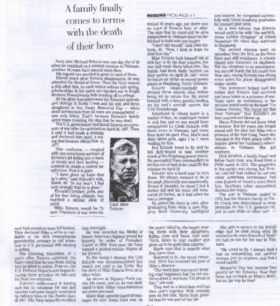 This Skyhawk Association website page is dedicated to Lieutenant Commander Michael J. Estocin