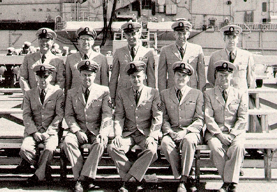 VA-192 Officers 1961. 1961 Cruise Book. Front Row Left to Right: LT J. Huber; Lcdr. L. Zuehlke; C.O. CDR B. Adams; CDR C. Buchanan; LCDR G. Palmer. Second Row Left to Right: LTJG J. Hartt; LTJG D. Gerrish; LTJG D. Smith; LT W. Yonke; LTJG R. McFerren; LTJG H. Hall. Third Row Left to Right: LT W. O'Connor; LT J. Gamble; LTJG W. Hedeman; LTJG F. Mezzadri; LTJG R. Kaup; LTJG J. Law. VA-192 1961 Chief Petty Officers. 1961 Cruise Book. VA-192 Chiefs. Front Row Left to Right: CPO R. Peoples; CPO V. Escalle; CPO J. White; CPO B. Allison; CPO E. Bailey. Second Row Left to Right: CPO V. Clegg; CPO C. Sanders; CPO E. Rainbow; CPO P. Sampson; CPO J. Jackson.