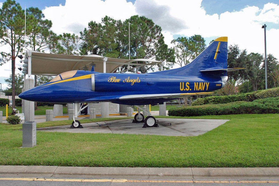 February 2002: on a pedestal in Blue Angels colors. Photo by Bill Kistler.