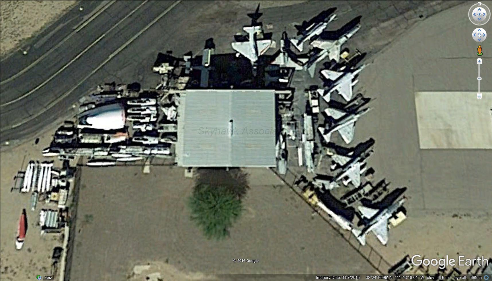 Skyhawks last sited 07 NOV 2015 at what we believe to be Bill Maszala’s storage facility, ATW Aviation, Inc., in Marana, AZ.Grp1: Eight Skyhawks, one without wings. And four T-Bird cockpits. Skyhawks that were in the disposition yard(s) other than former Malaysian birds.151050: 3A741 14 Douglas A-4E Skyhawk 13220 19Jul02 151064: 3A739 10 Douglas A-4E Skyhawk 13234 For Torrance Aero Museum, Fullerton, CA. 152012:3A646 Douglas A-4E Skyhawk13400 11Mar02 19Jul02 17Aug02 152070: 3A792 Douglas A-4E Skyhawk13458 11Mar02 19Jul02 17Aug02 ; 158146: Forward fuselage former VT-7 A-722 T-Bird. 158486: put together by Air Capitol Warbirds. Cockpit section is 158486, wing is 148602 and tail is 149540. 158540: GV had it listed. Cockpits for FunMike Hoover is working on an early Skyhawk cockpit. PIC1 AOA panel question from Mike: Here are more pictures of a panel I found inside about where your knees would be when sitting in the seat. And the other is on the outside showing a panel from what I found was only on the A model. Other models have it but its a bigger size. Skyhawk cockpit. PIC1 John Slezak has some cockpits in his garage, check out the photos below. Pieces and PartsAviation Services Pt. Suba Manggala 158481: 2007: "The BuNo is 158481, Gabby got me the historical data on the airframe, where it was assigned, hrs, ldgs and such. Was accepted 2 Aug of 1972. I am in the process of selling the TA-4 section ......." John Slezak. [Front cockpit section only ]. Pic1; Pic2; Pic3; Pic4; Pic5; Pic6; Pic7; Pic8. Sonoma, CA. Skyhawk pieces/parts: including tail for 153683 at Sonoma, CA. 153683-Sonoma CA Skyhawk Pieces. On 06/14/2011 11:06 AM, David Duarte wrote: By poking around I stumbled on to your (web) site much the same as I stumbled on to a 1 1/2 acre yard in the heart of the vineyards in Sonoma California. The yard holds a very large collection of A4's in various stacks and groups of parts. canopies , tail sections, landing gear, wing sections etc. all neatly stacked as if waiting for a buyer. The location is on the corner of the roads Denmark and 8th in Sonoma. This location sounds urban by the names but it is out in the middle of the vineyard boonnies. I pass by the site often and have spoken to the apparent owner/guardian. He was cordial and polite but not very informative. I do not know if the collection is available for sale but I have seen that the inventory has changed over the years. The ship's names and units are still readable on the sides of the fuselages. The Lexington and another ship maybe the Kitty Hawk were visible on a few of the tail sections . On the next trip I'll take notes and pictures and send them on to this site if anyone is interested. 38degrees 16 minutes 41.52secs North x122degrees 26 minutes 11.89 secs West. |